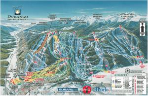 | Durango Mountain Resort features more than 2,500 acres of terrain and the resort boasts that there are only 2 people per acre on their uncrowded slopes.The "front side" features many runs named after or inspired by Dante's Divine Comedy - Pandemonium, Paradise, Catharsis, Demon, and Divinity to name a few. The front also offers some of Durango's premier mogul runs - such as Lower Hades and Styx - as well as the gentle, forested beginner terrain surrounding the Twilight chairlift.